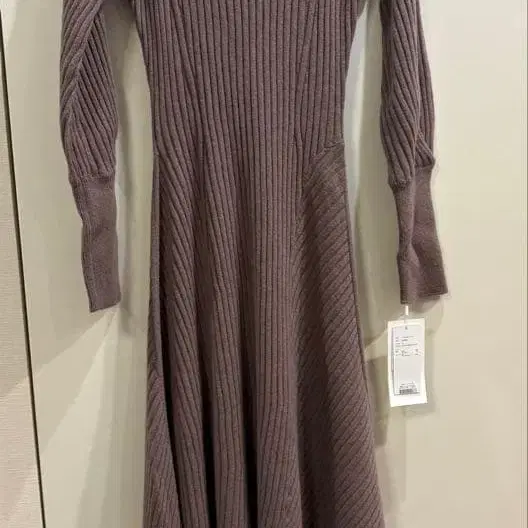 미사용 새상품 리브 니트 긴팔 플레어 원피스 베이지 퍼플