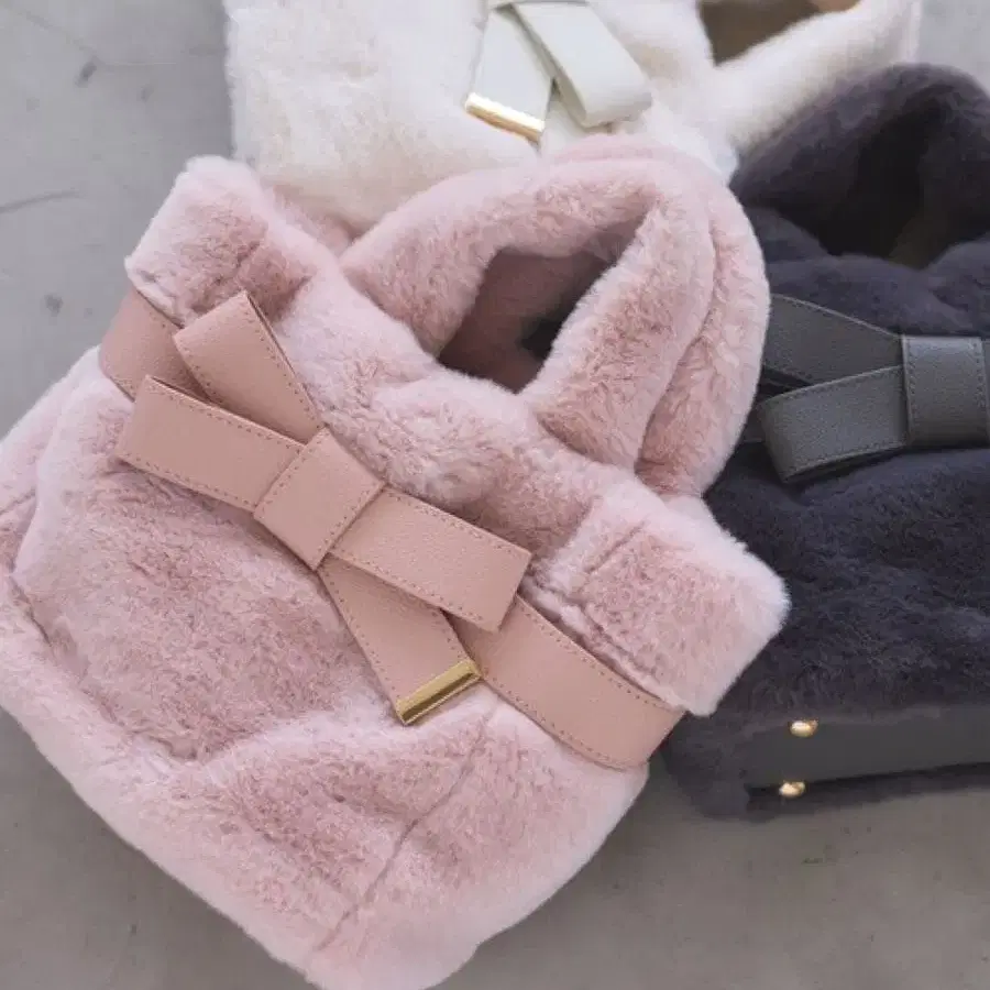 vis 퍼 리본 토트백 핑크