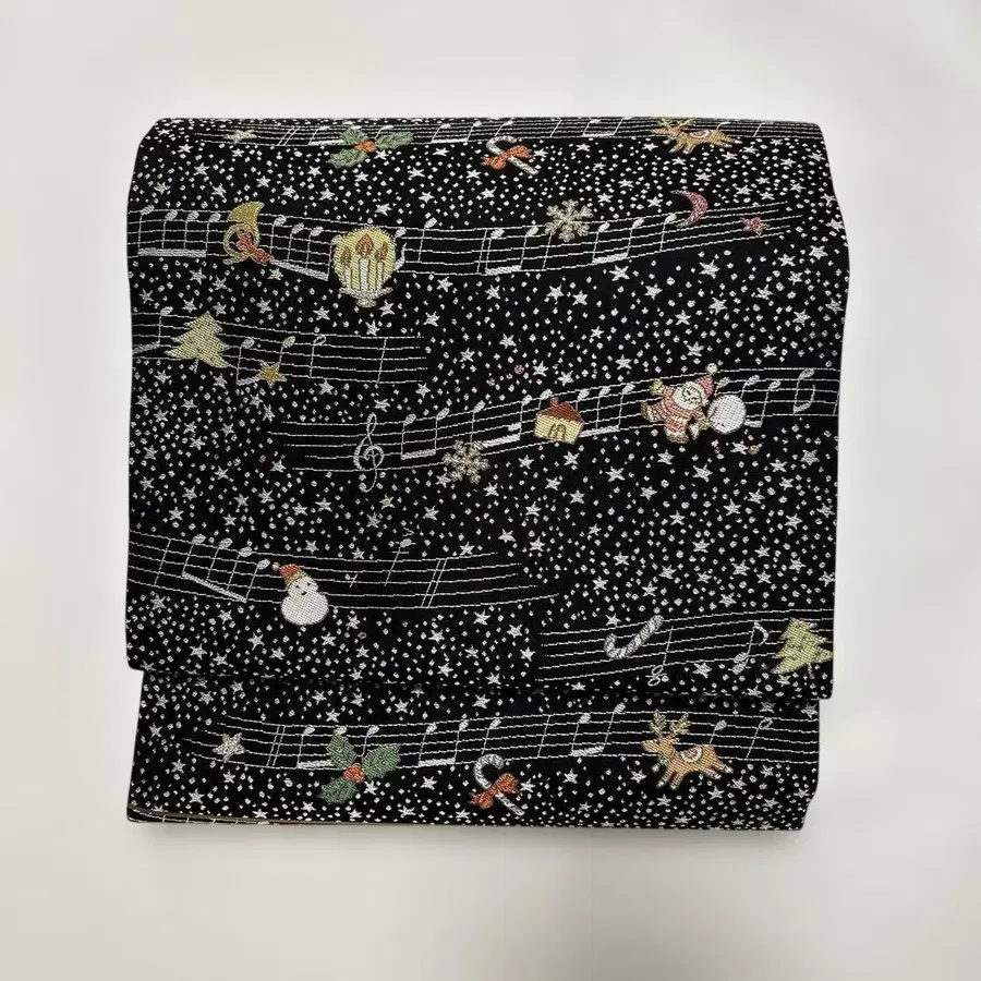 나고야 오비 완성품 블랙 크리스마스 패턴 리스 산타 호랑가시나무 트리