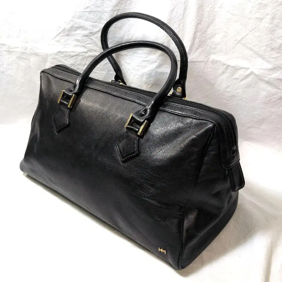 HANAEMORI 고급 블랙 천연 가죽 보스턴 백
