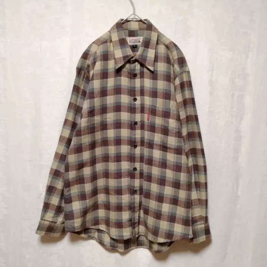 Budweiser 체크 무늬 플란넬 셔츠 브라운 블루 헤링본 직조