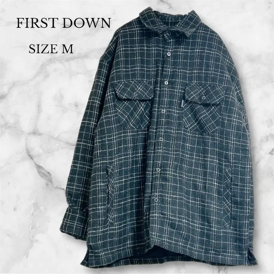 택 포함 새상품 퍼스트 다운 셔츠 자켓 체크 무늬 그린 M