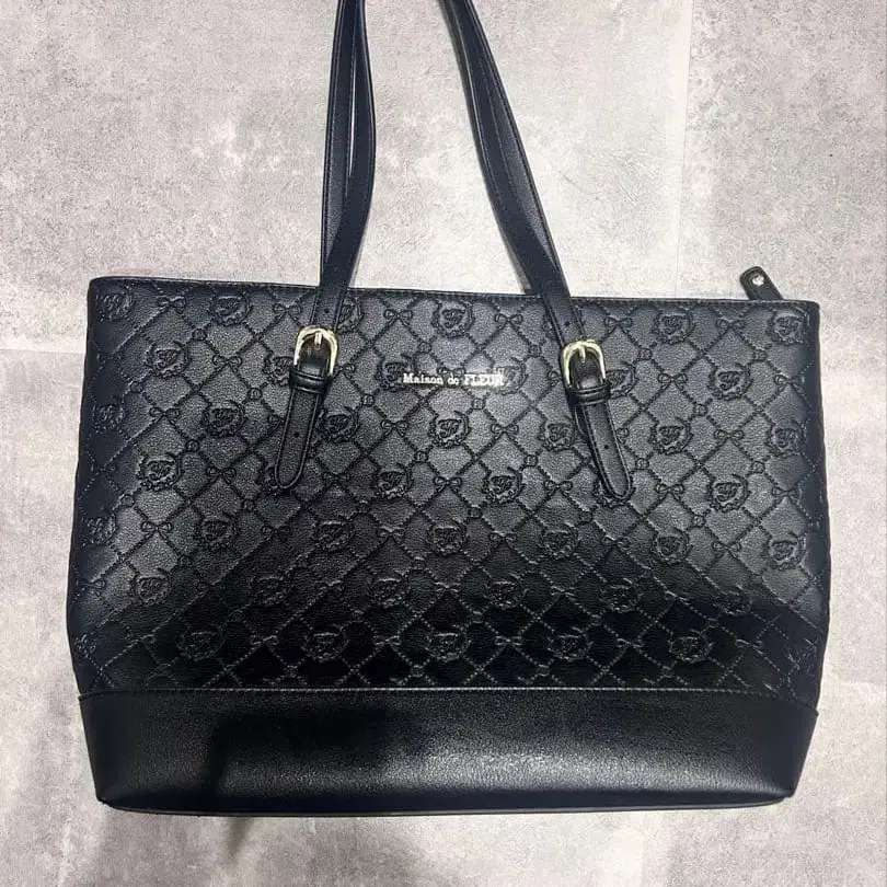 메종 드 플뢰르 토트백 모노그램 블랙 금 로고 A4 수납 가능