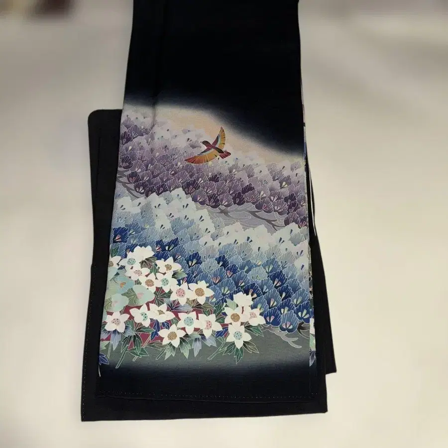 c12167 블랙 전통 예복 기모노 꽃과 새 디자인