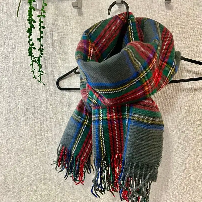 대형 스톨, 숄 차콜 계열 타탄 체크