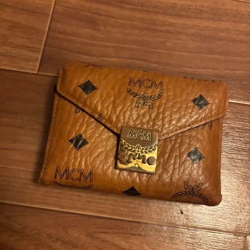 MCM 브라운 가죽 3단 폴더형 지갑