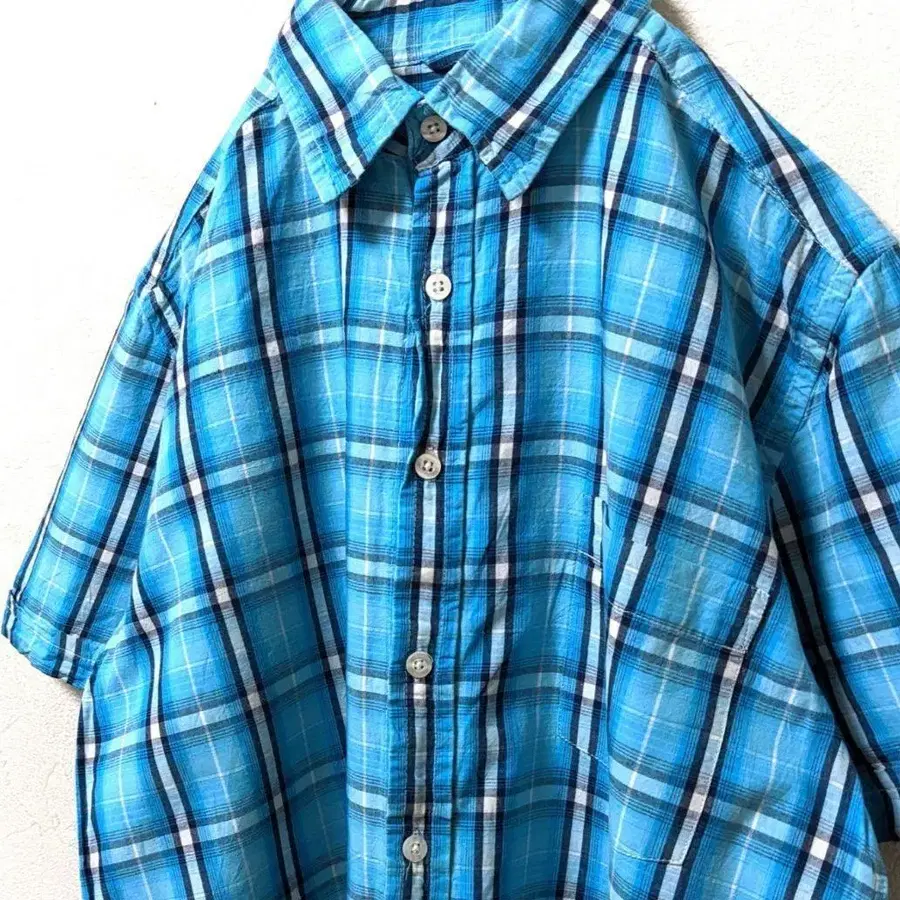 시더 우드 체크 구제 의류 반팔 셔츠 블루 파랑