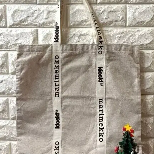 마리메꼬 키오스키 로고 코튼 린넨 토트백 베이지