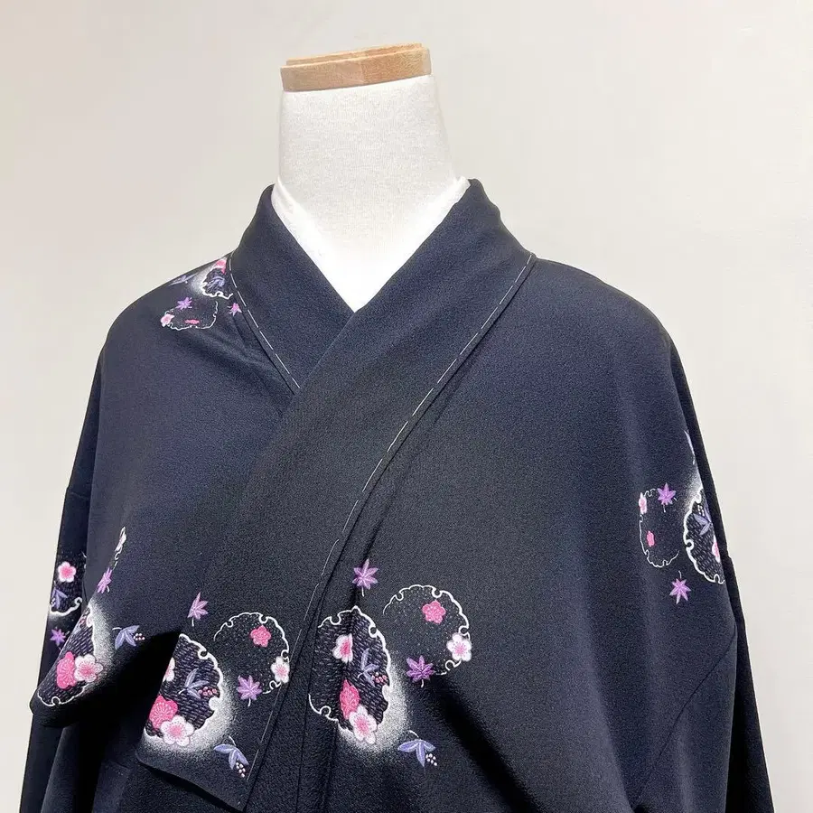 미착용 코몬 설륜 송죽매 단풍 네이비 기모노 045k p
