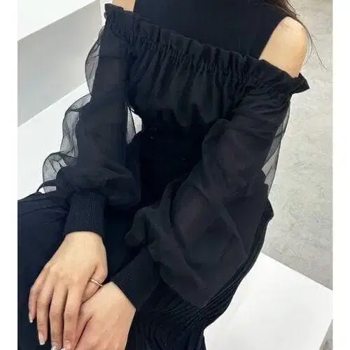 MERCURYDUO 이소재 도킹 오프숄더 니트 하프 슬리브 원피스