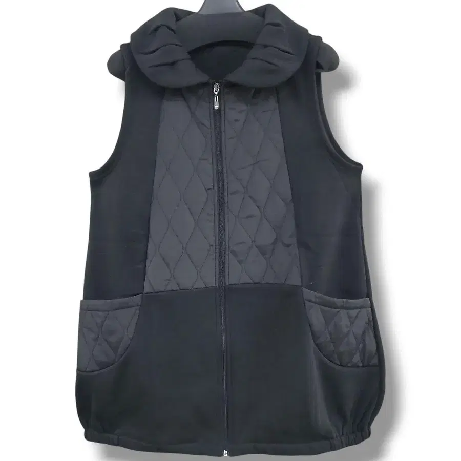 베스트 속기모 튜닉 풀오버 둥근 카라 이소재 블랙 퀼팅