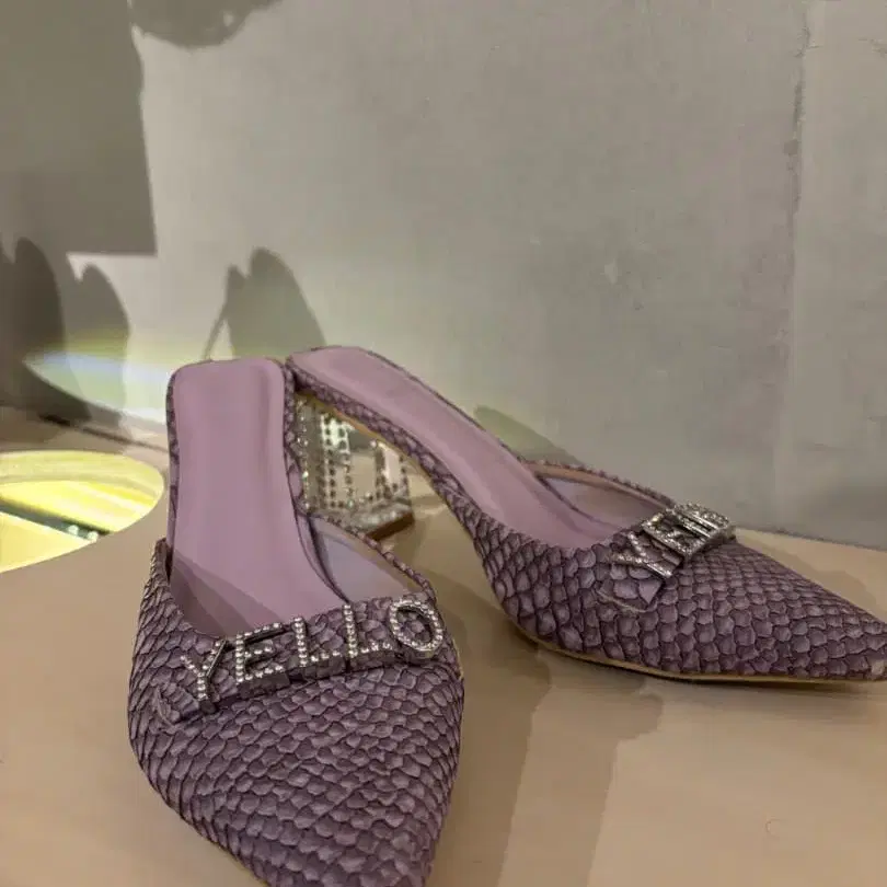 퍼플 스네이크 스킨 뮬, YELLO