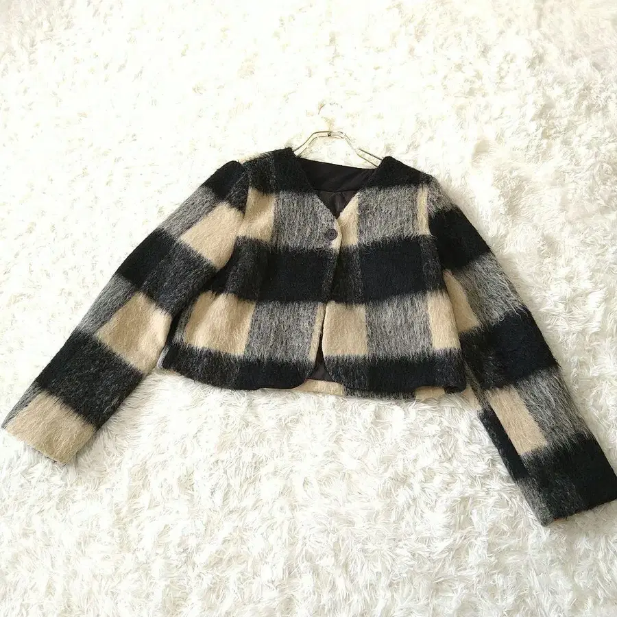 크롭 옴브레 체크 노카라 자켓 M 모헤어 느낌