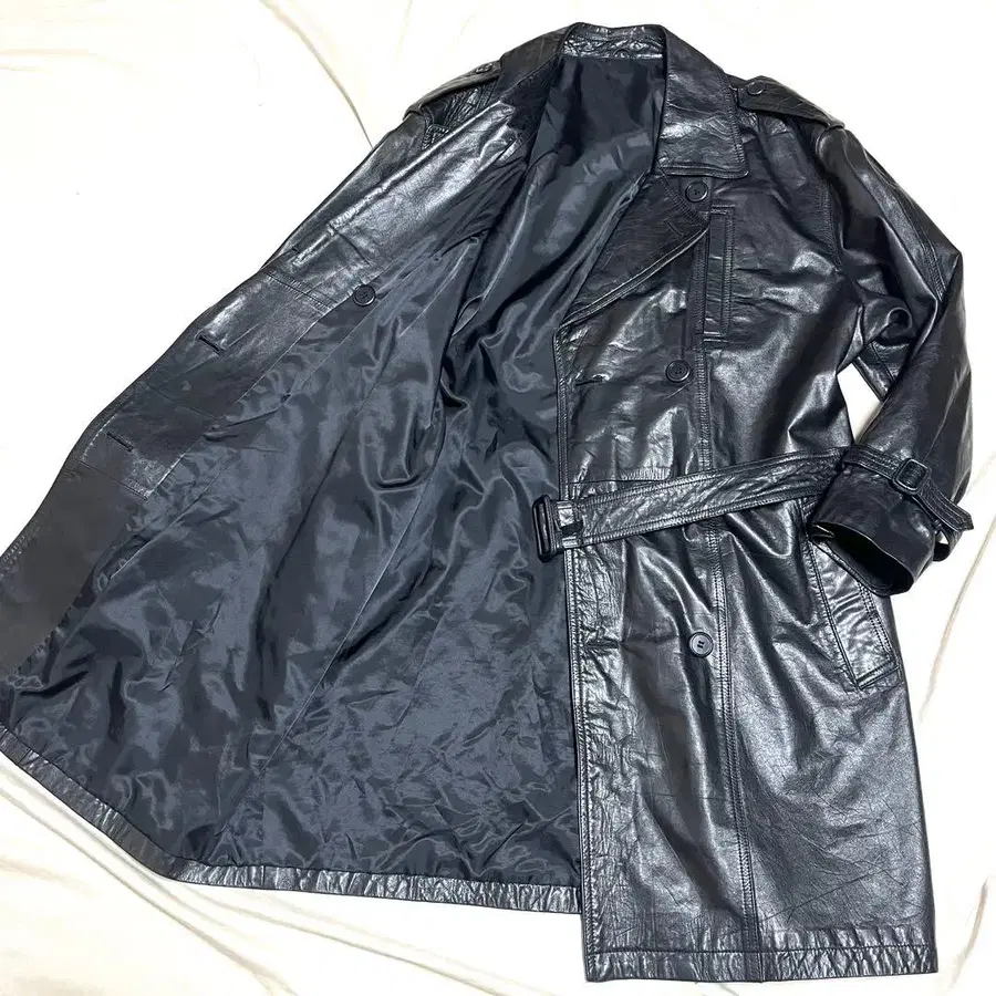 카우 가죽 롱 트렌치코트 소가죽 벨트 포함 빈티지 빅 사이즈 L