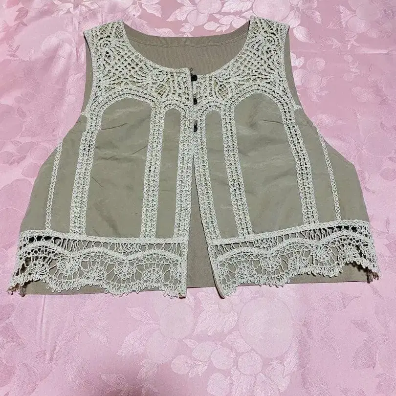 쿨카리안 레이스 장식 베이지 슬리브리스 베스트