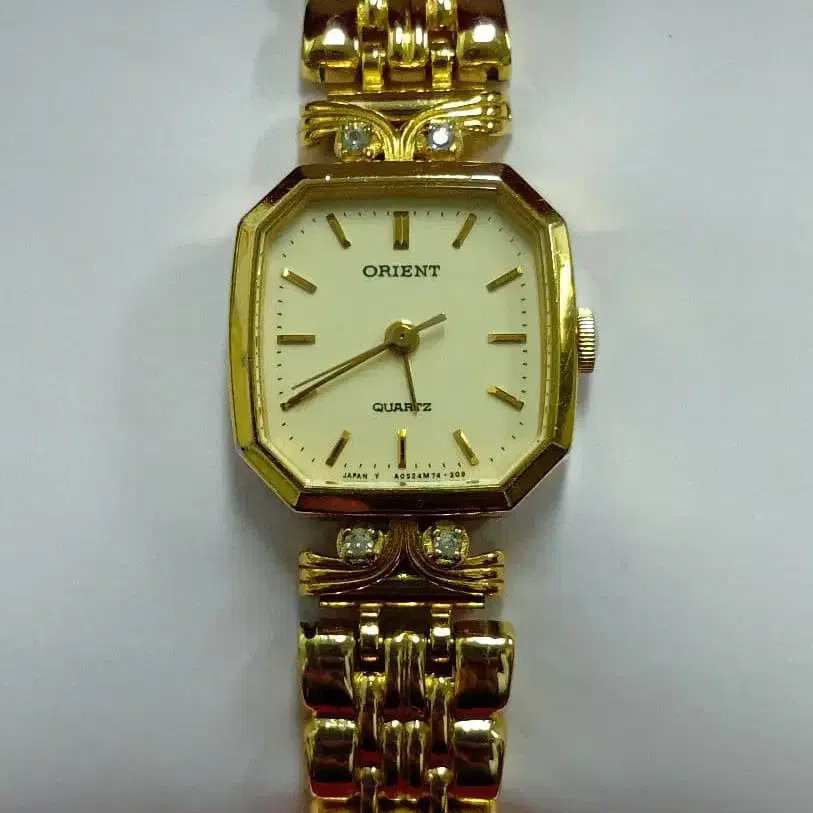 ORIENT 여성용 골드 쿼츠 손목시계 작동품