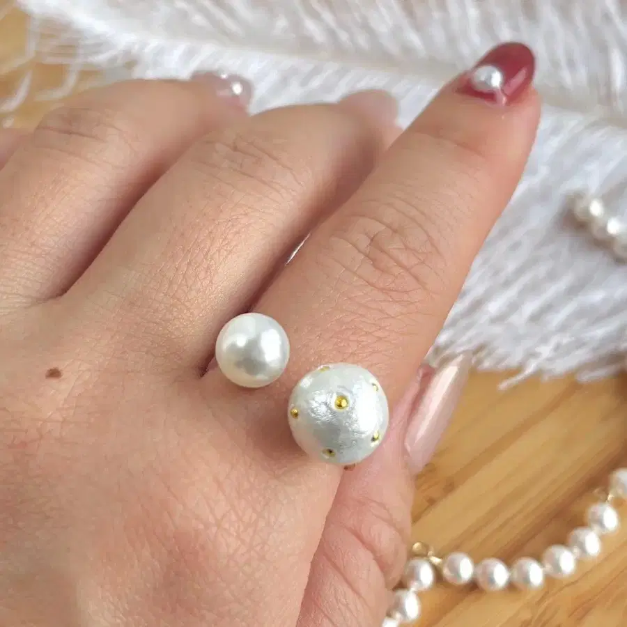 크고 작은 2개의 진주가 인상적인, 완전 오리지널 디자인의 진주 반지입니다. 광택 있는 싱글 볼 진주와, 표정이 풍부한 코튼 진주를 조합하여, 심플하면서도 존재감 있는 디자인으로 완성했습니다. 비대칭 밸런스가 손가락에 내추럴함을 더해주며, 평소 착용은 물론, 깔끔한 코디나 특별한 날의 악센트로도 추천합니다. 반지 부분에는 써지컬 스테인리스를 사용하여, 변색이 적고 금속 알레르기가 일어나기 어려운 소재입니다. ✔ 완전 오리지널 부품 ✔ 핸드메이드 작품 ✔ 고급 성숙/러블리 디자인 [ 사이즈 ] 반지 사이즈: 약 12호 [ 소재 ] 코튼 진주 수지 진주 써지컬 스테인리스 ※ 핸드메이드 작품이므로, 약간의 개체 차이가 있을 수 있음을 이해해 주십시오. #진주반지 #코튼진주 #핸드메이드반지 #오리지널액세서리 #써지컬스테인리스 #금속알레르기방지 #성숙러블리 #고급액세서리 #하나뿐인아이템