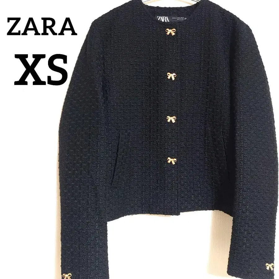 ZARA 루프 버튼 부착 텍스처 자켓 리본 XS 사이즈