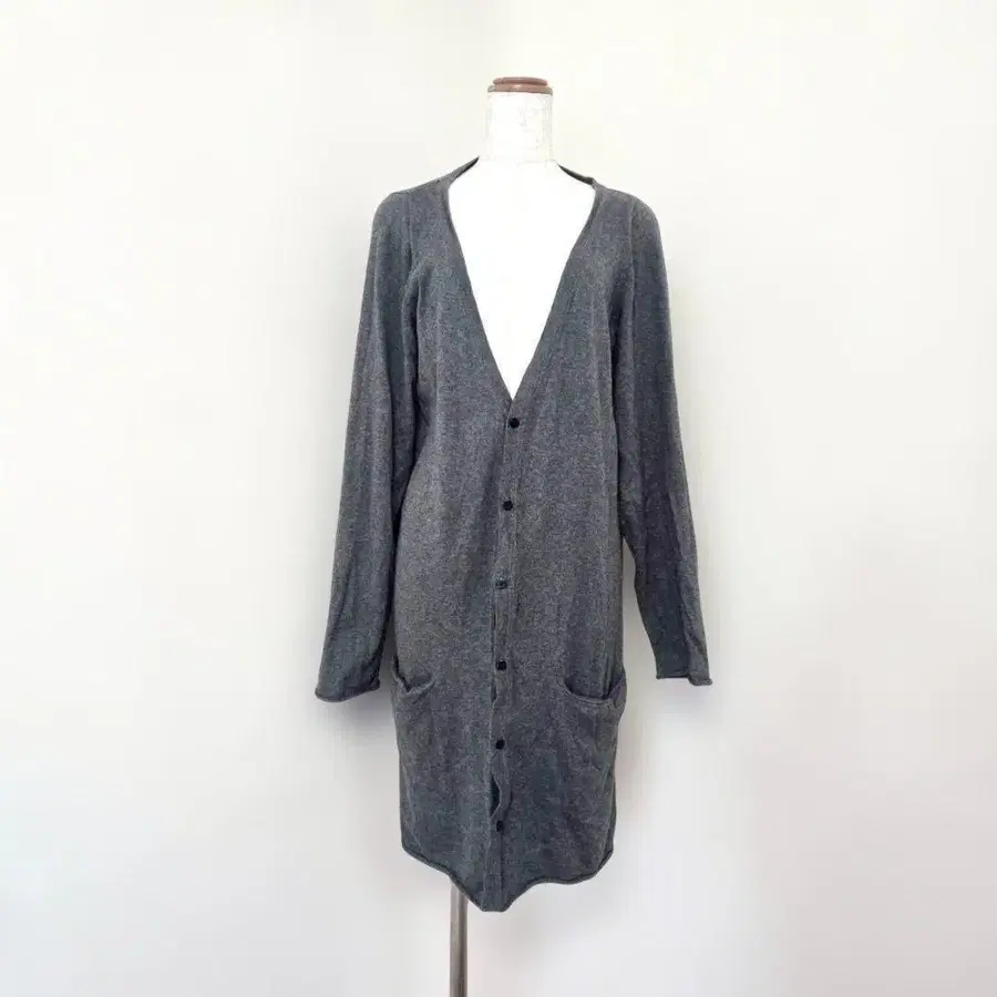 울 모헤어 니트 V넥 롱 가디건 그레이 L