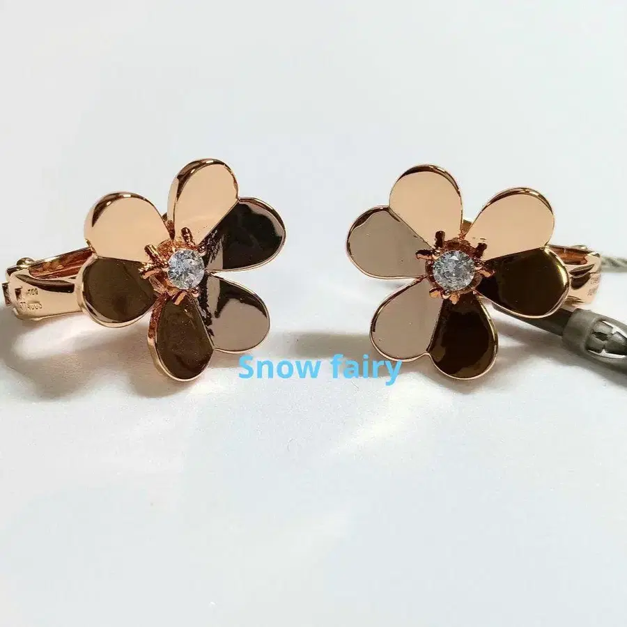 하이퀄리티 1스톤 세잎클로버 귀걸이 핑크 골드 PG 컬러