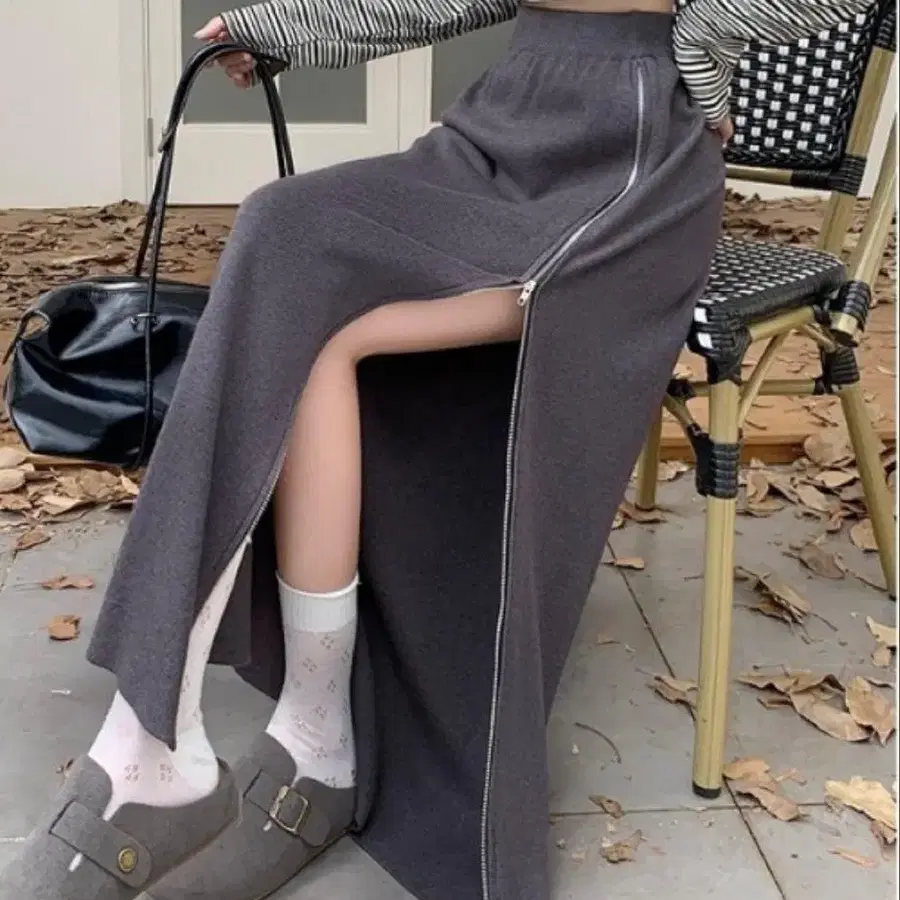 anuans 분또 스웨이드 타이트 스커트 라이트 그레이 롱 슬릿 밴딩