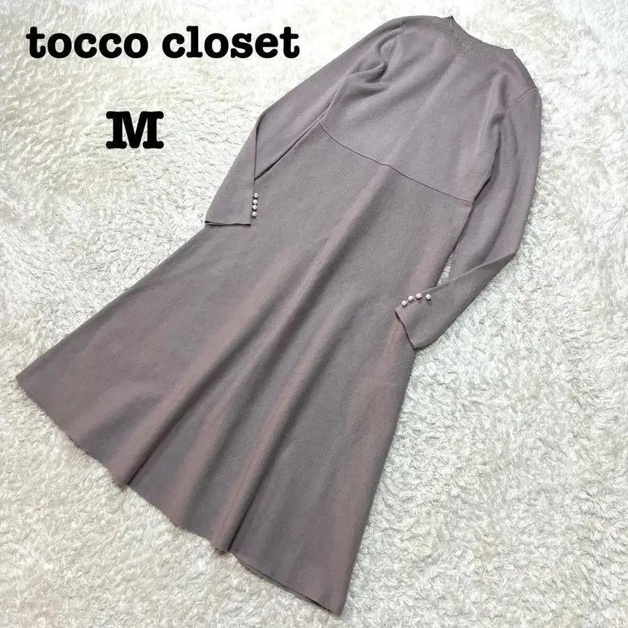 토코 클로젯 소매 펄 플레어 니트 원피스 롱 긴팔 M