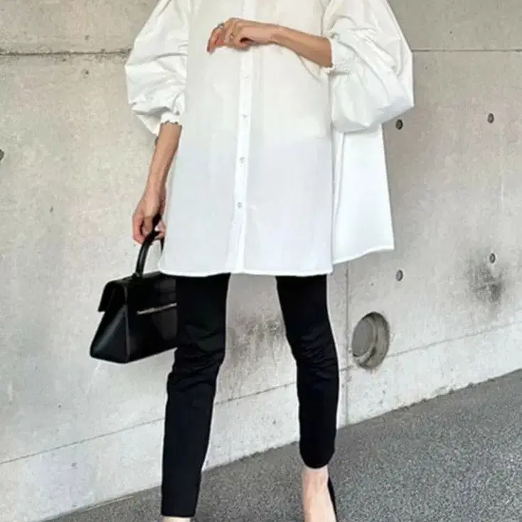 새상품 봉쥬르 사간 화이트 벌룬 슬리브 셔츠