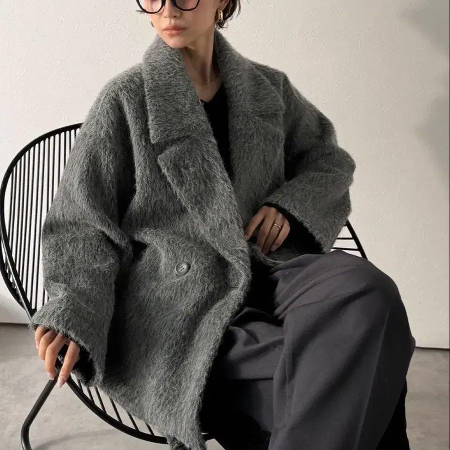 classicalelf 2way 샤기 더블 빅 칼라 자켓 코트