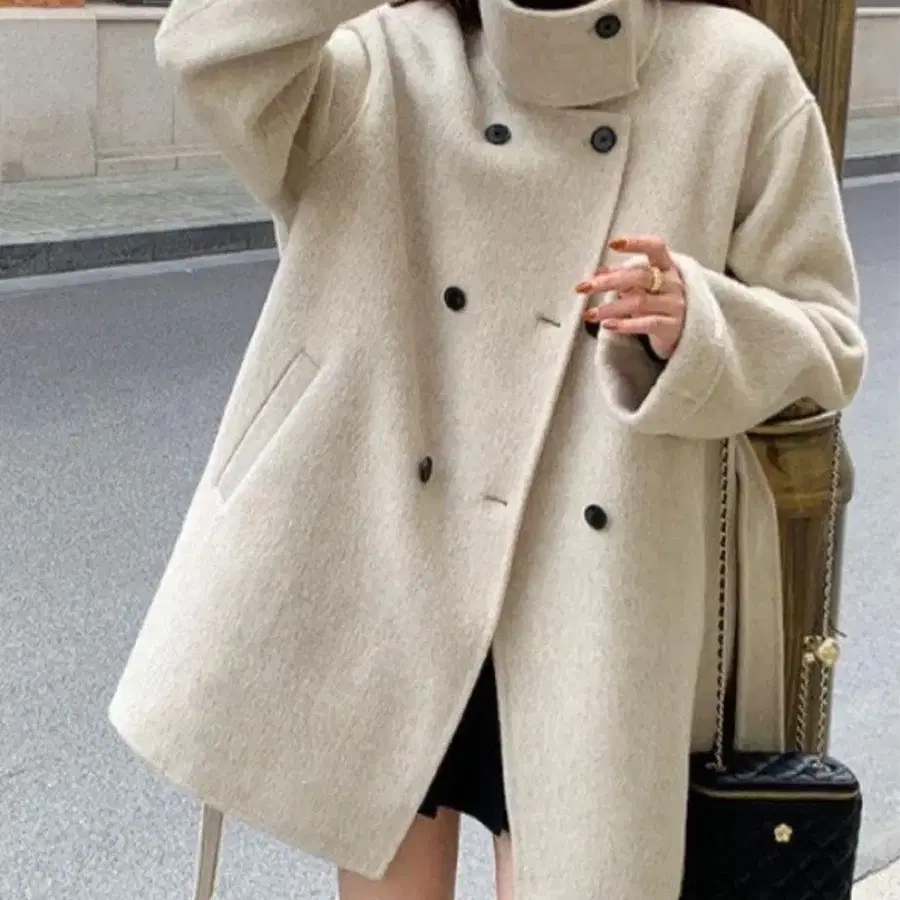 자동 번역되었어요. 원문보기크림색 페이크 울 스탠드 카라 미들 기장 코트