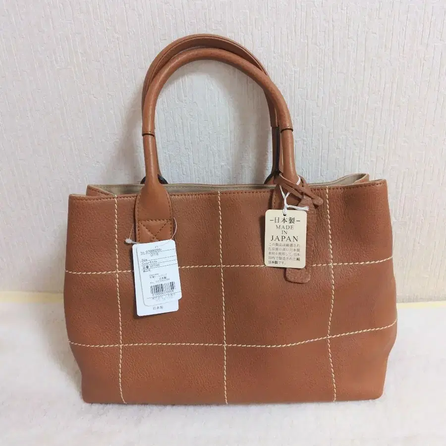 일본제 천연 가죽 핸드 토트 백 카멜 스티치 여성용