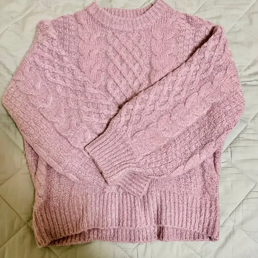 핑크 케이블 짜임 니트 스웨터