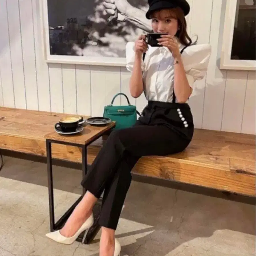 새상품급 sheller 2way 펄 서스펜더 테이퍼드 팬츠 셰리에