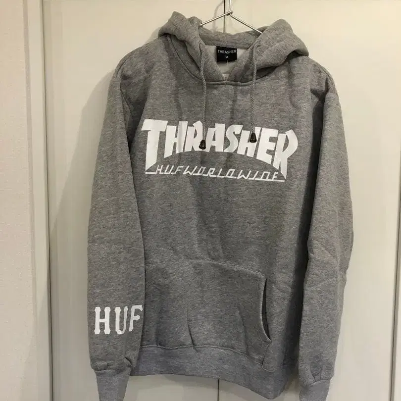 Thrasher HUF 콜라보 그레이 후드 부착 후드티