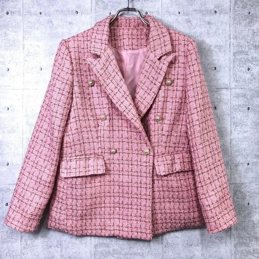 레트로 클래시컬 바비 구제 의류 펄 버튼 체크 무늬 트위드 자켓