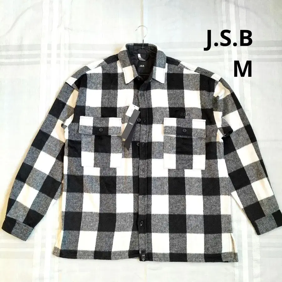 택 포함 새상품 J.S.B. 체크 무늬 플란넬 셔츠 블랙/화이트 M