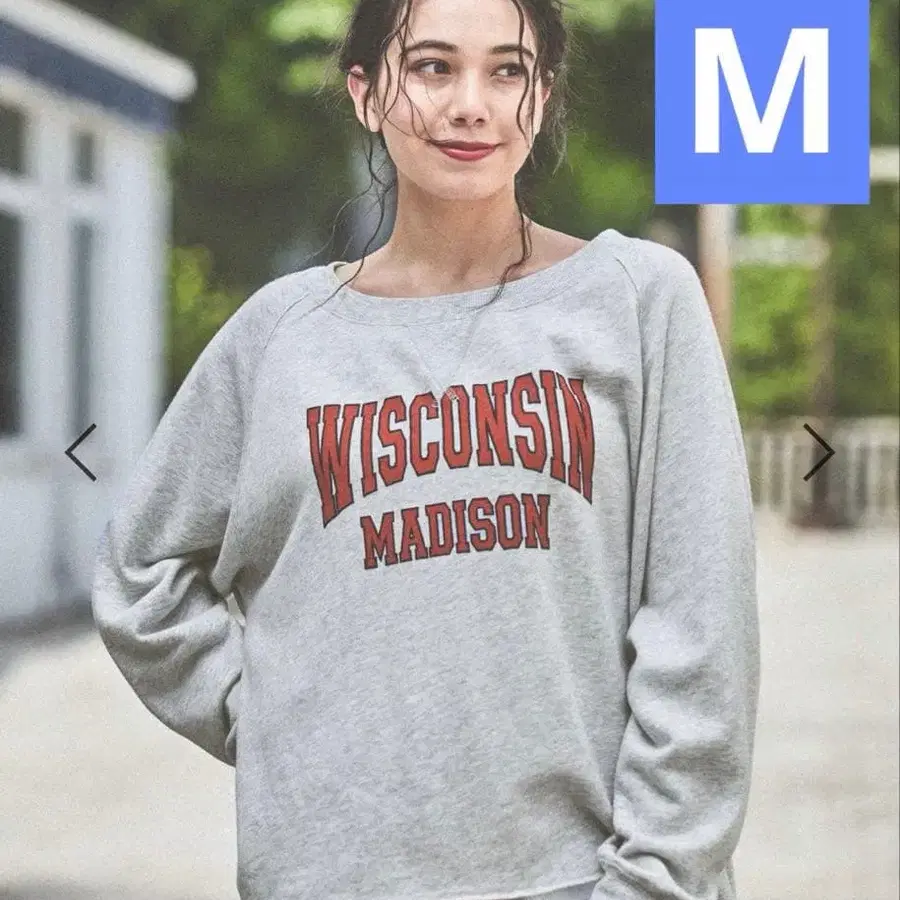 데콜테 라인을 예쁘게 보여주는, 트렌디한 칼리지 맨투맨