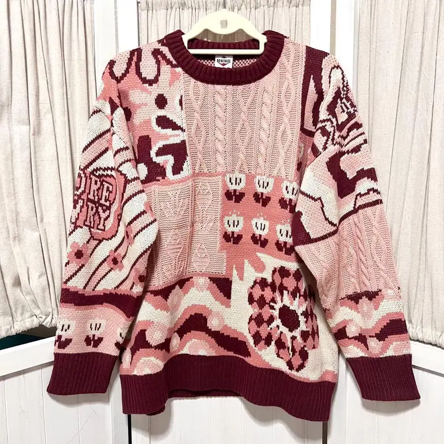 HOOK 패치워크 무늬 니트풍 맨투맨