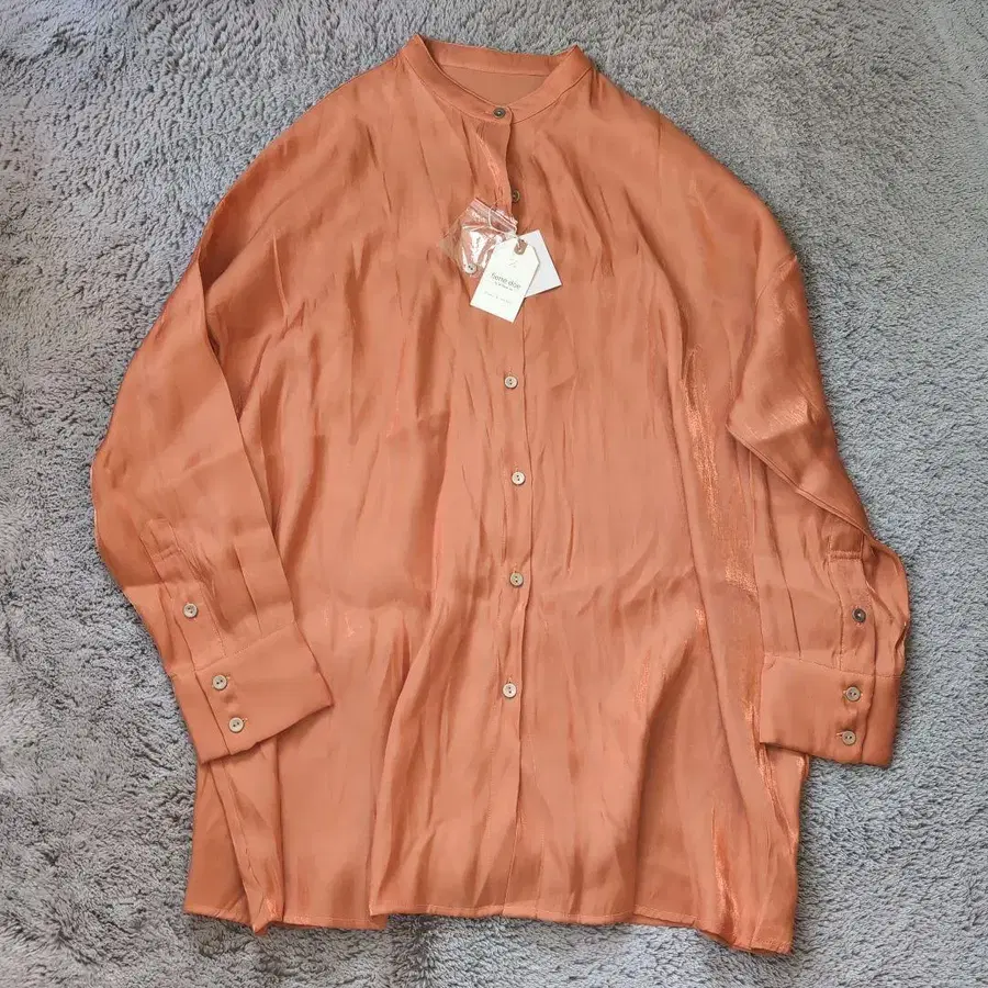 새상품 ANTIQUA 안티카 글로스 셔츠 오렌지 긴팔 무지 광택