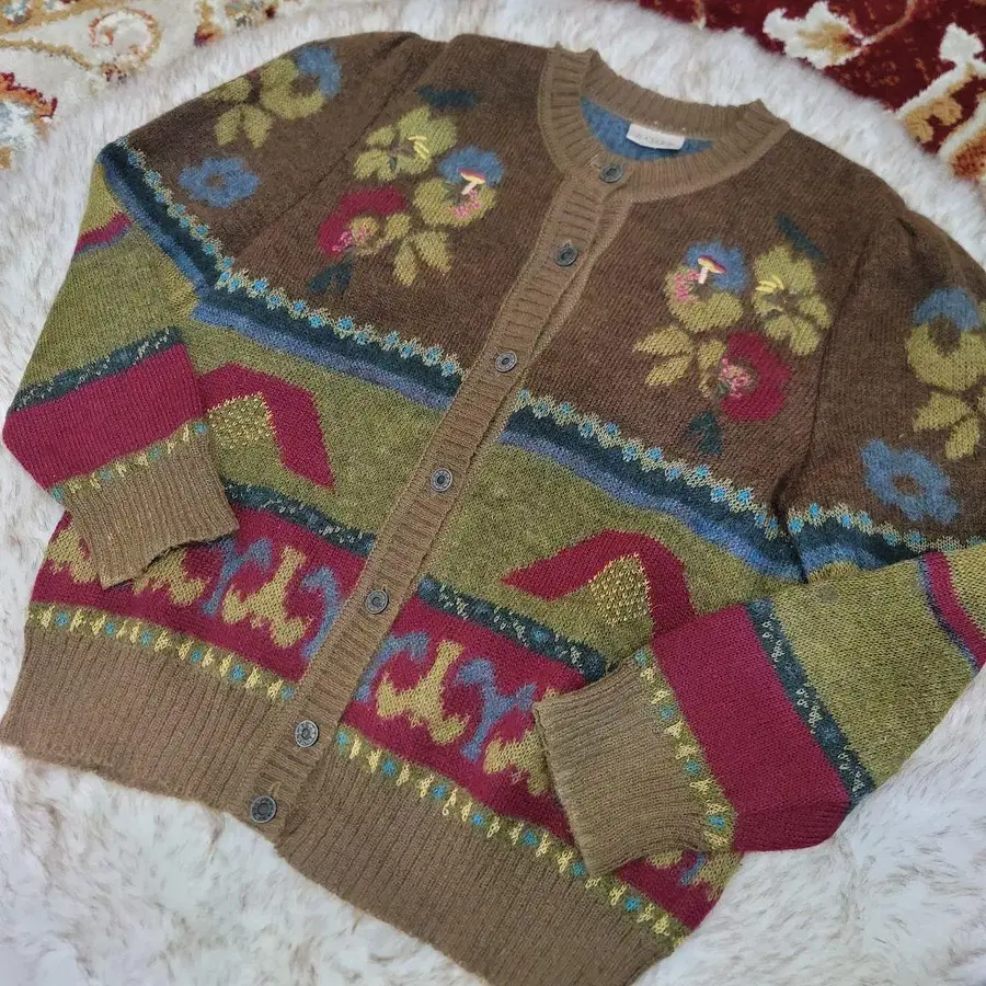 꽃무늬 모헤어 니트 가디건 울 알파카 카키 서독제