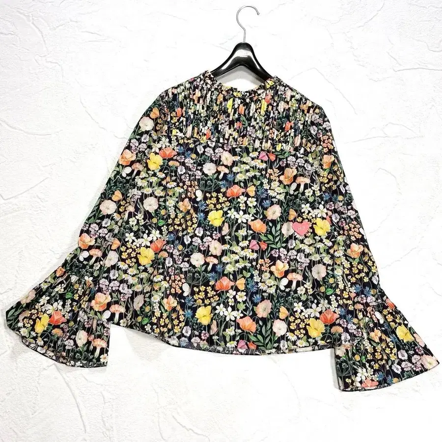 호러 바큐이 꽃무늬 블라우스 프릴 리본 핀턱 멀티 컬러 올 패턴