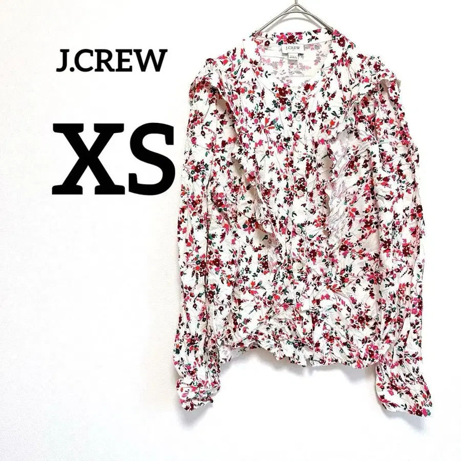 J.CREW 꽃무늬 프릴 긴팔 블라우스 [ XS ] 화이트 핑크 귀여운
