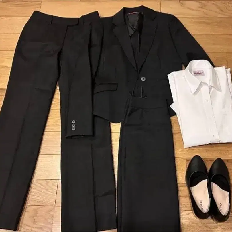 블랙 비즈니스 정장 세트 (셔츠, 신발 포함) 신발 23.5
