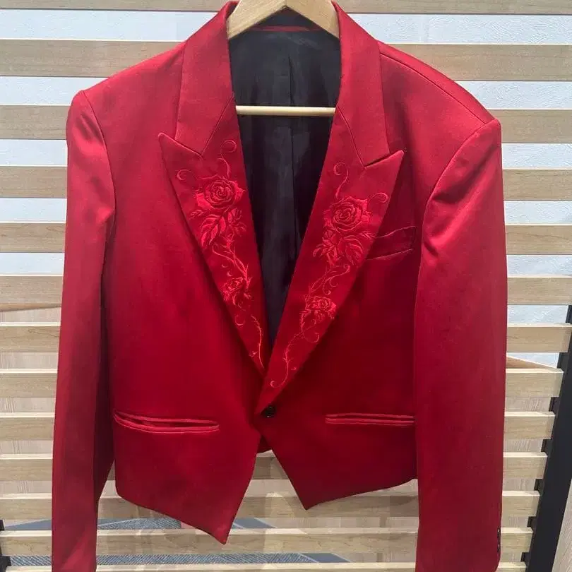 빨간 장미 자수 테일러드 자켓 남성용 패션