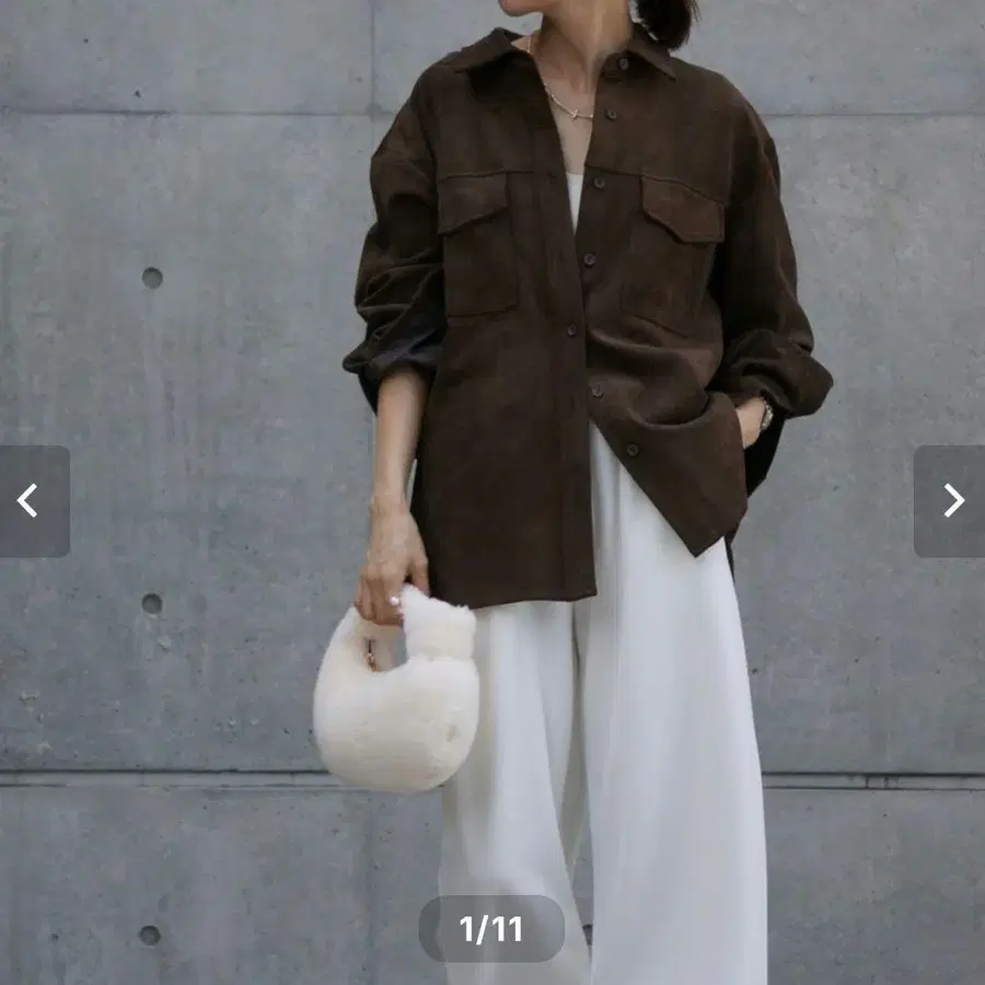 AnewElan 페이크 스웨이드 오버 셔츠 재킷 H2025 ANEW 부드러운 촉감의 페이크 스웨이드 소재를 사용한 오버 실루엣의 셔츠 재킷입니다. 가볍고 부드러우며 고급스러운 인상을 주면서도 데일리로 입기 좋은 아이템입니다. 적당히 여유 있는 실루엣으로, 이너로 니트나 긴팔 티셔츠를 레이어드해도 부해 보이지 않고 쾌적합니다. 걸치기만 해도 멋스러운 스타일이 완성됩니다. 흰색 티셔츠와 데님으로 캐주얼하게, 터틀넥과 함께 매치하여 성숙하게, 같은 계열의 팬츠로 톤온톤 코디도 추천합니다. 초가을의 가벼운 아우터로는 물론, 겨울에는 코트 안에 이너로도 좋습니다. 팬츠와 스커트 모두에 잘 어울리는 다용도 아이템입니다. 모델 163cm 사이즈 프리 색상 갈색 구매 가격 13,200엔 -FABRIC- 소재/폴리에스테르 95%, 폴리우레탄 5% 사이즈/프리 색상/브라운, 그레이 원산국/중국 세탁 표시/30℃ 이하에서 세탁기 사용 가능 -SIZE- 기장 69cm 가슴 너비 59cm 소매 길이 59cm 소매 폭 13cm 소매 너비 18cm 어깨 너비 52cm ■ 이미지 관련 안내 ■ 이미지는 빛이나 모니터 사양에 따라 실제 색상과 다소 차이가 있을 수 있으니 미리 양해 부탁드립니다. 중고 제품에 대한 이해가 있는 분께 판매합니다. 프로필을 반드시 읽어주세요. 가끔 새 상품과 같은 상태를 기대하시는 분들이 계시지만, 중고 제품이며 개인 검품으로 인해 발견하지 못한 부분이 있을 수 있습니다. 완벽한 상태를 원하시는 분은 삼가해 주시기 바랍니다. #유나이티드 애로우즈 #투모로우랜드 #UNITEDARROWS #TOMORROWLAND #데프레 #DESPRES #이에나 #IENA #쉽스 #SHIPS #스픽 앤 스팬 #SPICKANDSPAN #에스트네이션 #ESTNATION #어반 리서치 #URBANRESEARCH #나노 유니버스 #nanouniverse #두지엠 클라세 #세븐텐 색상 - 브라운 계열 기장 - 롱 후드 - 후드 없음 계절감 - 가을, 겨울 얼룩, 찢김, 냄새 등 - 없음