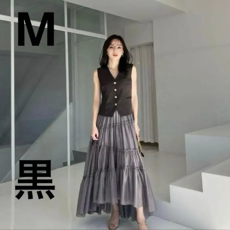 anuans 볼륨 티어드 오간자 스커트 블랙 M