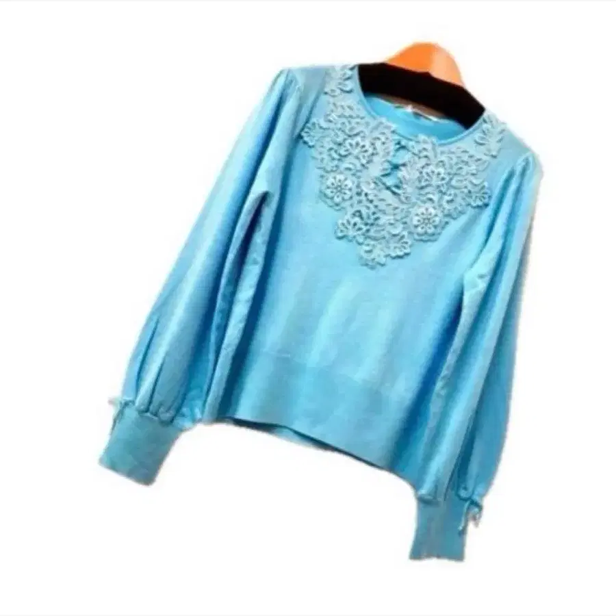 슈퍼 뷰티 블루의 자수 니트 긴팔 상의