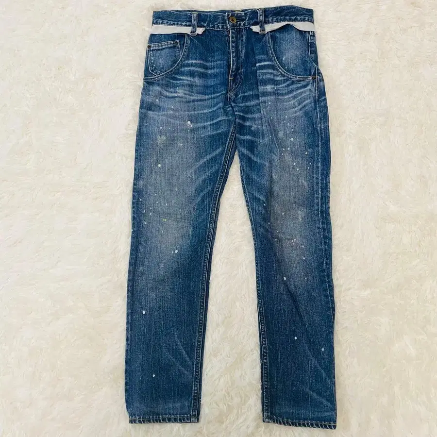 화이트 라인 페인트 가공 데님 팬츠 코튼 일본제 S