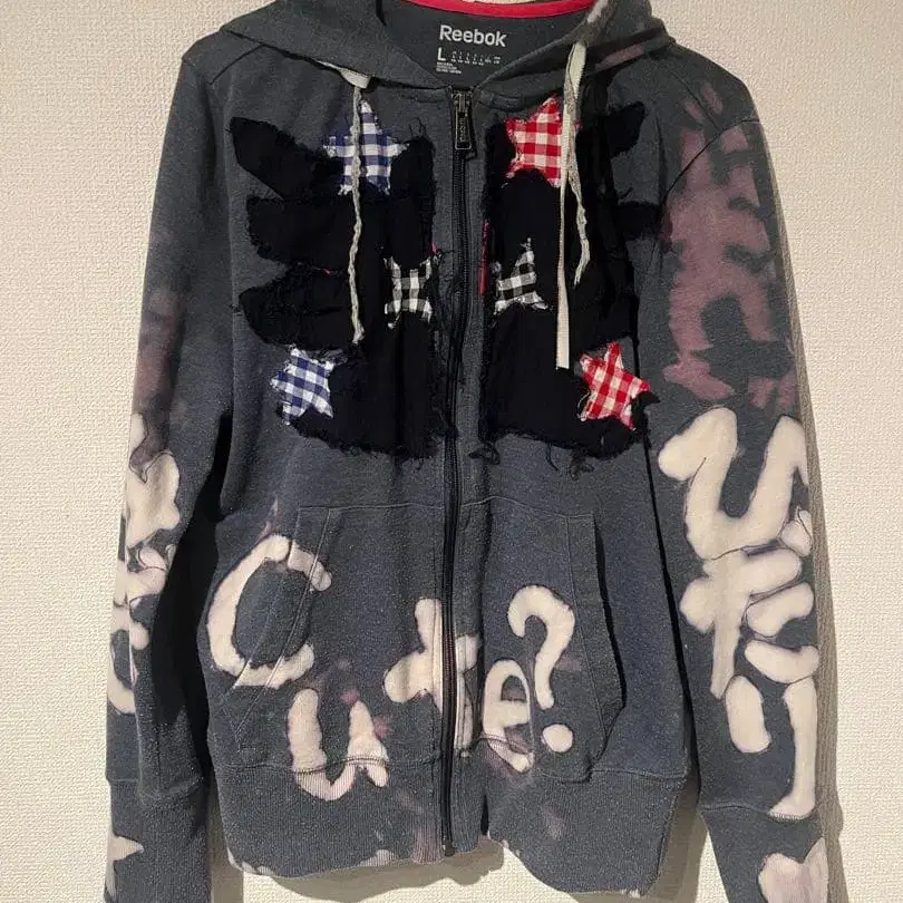 Reebok (리복)의 풀 집업 후드티를 베이스로, 대담한 리메이크를 더한 세상에 하나뿐인 아이템입니다.
