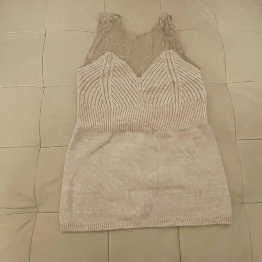 Snidel 슬리브리스 니트 뷔스티에풍 레이스 베이지