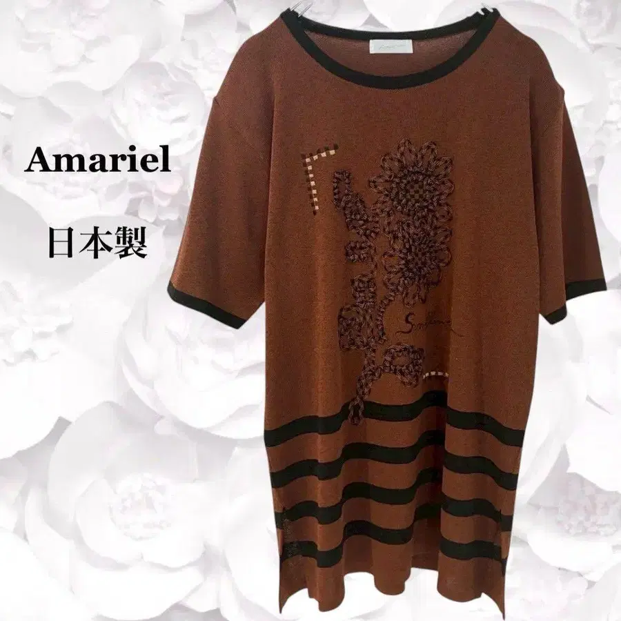 새상품급 [아마리에르] 니트 스웨터 롱 [F] 브라운 계열 꽃무늬 일본제